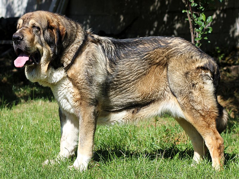 2 años y 4 meses, excelentes proporciones, excelente hueso y angulaciones posteriores y inferiores, muy buena cabeza, excelente pecho, abundantes pieles, sólida, fuerte y típica y excelente movimiento.
